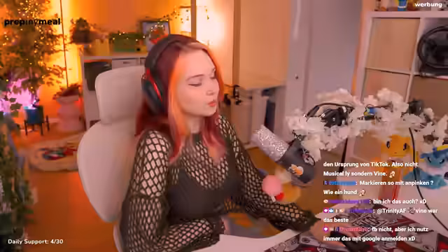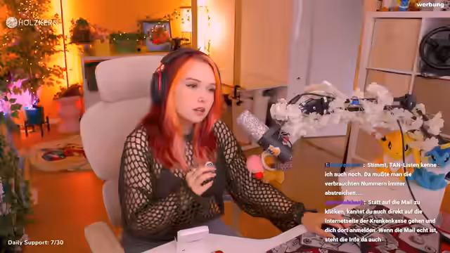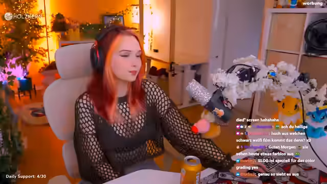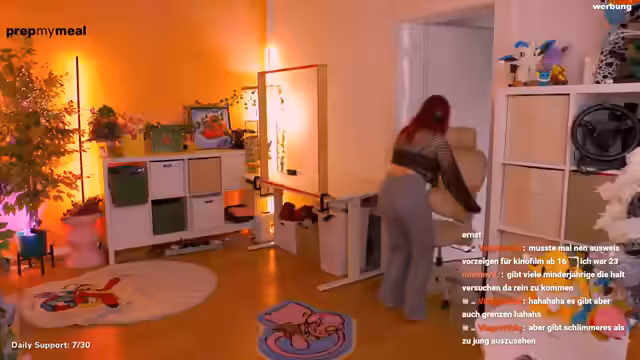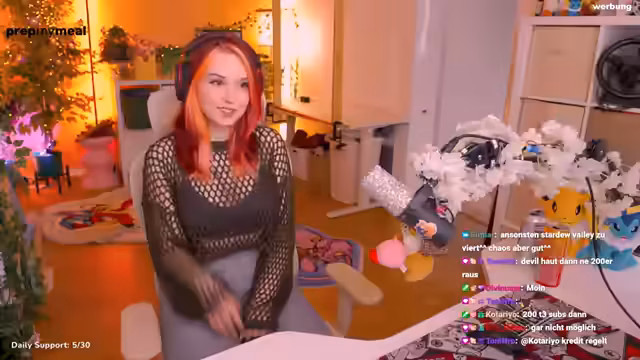 00:08:23Der Stream beginnt mit einer herzlichen Begrüßung an den Chat, wobei die Streamerin ihre Freude über das neu gestaltete Setup teilt. Sie erklärt, dass sie den vorherigen Tag mit dem Umbau verbracht hat, um mehr Platz zu schaffen. Die Streamerin bedankt sich bei neuen Followern und erwähnt, dass sie eigentlich mit Julia Code-Tufting machen wollte. Sie reagiert auf Kommentare im Chat, entschuldigt sich für versehentliches Anschreien und freut sich über positive Rückmeldungen zum verbesserten Chakra-Fluss im Raum. Die Streamerin erklärt die Umstellung ihres PC-Platzes, bedauert aber, dessen Beleuchtung nicht mehr sehen zu können. Sie nimmt Glückwünsche zu Yu-Gi-Oh!- und Shadowhunters-Fanartikeln entgegen, kann aber selbst keine persönliche Verbindung dazu herstellen. Abschließend erwähnt sie, dass sie den Alert noch umändern muss.