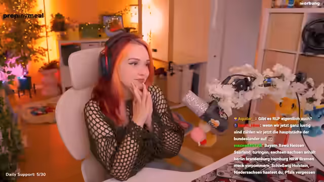 05:34:55Es wird über 'Horrornamen' gesprochen, wobei die eine Person ihren echten Namen Franka nicht mag, während die andere Person Julia als langweilig empfindet. Es wird kurz über Spitznamen diskutiert. Anschließend wechselt das Thema zu DDR-Erinnerungen, insbesondere zu Kinderliedern und Ostprodukten wie Knusperflocken und Filinchen. Es wird festgestellt, dass viele Zuschauer aus dem Westen Deutschlands diese Produkte nicht kennen. Knusperflocken werden als Schoko-Knäcke-Snack beschrieben und empfohlen. Es wird überlegt, wo man diese kaufen kann und wie die Verpackung aussieht. Abschließend wird über den Preis von Knusperflocken diskutiert und der Chat dazu aufgefordert, sich diese zu gönnen, aber erst nach einem Tier 3-Sub bei Feli und einem Tier 1-Sub bei der anderen Person.