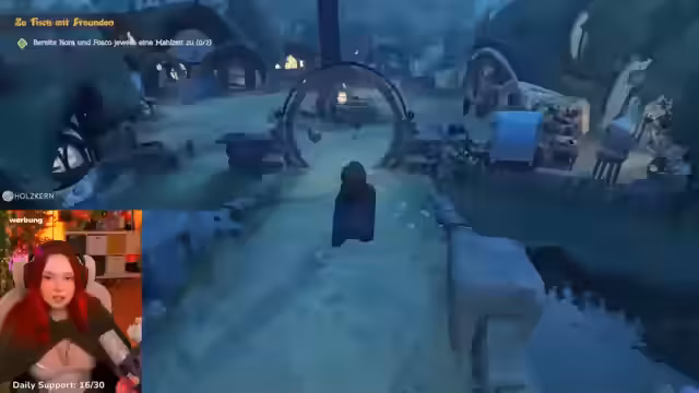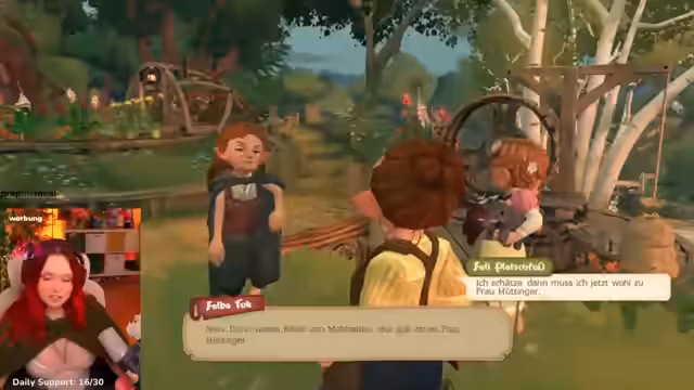 03:55:04Während der Erkundung erhält der Streamer eine neue Nebenquest von der jungen Tom Hüttinger. Aufgabe ist es, die verlorene Kuh Fräulein Butterblume zu finden und zurück auf den Hof zu bringen. Nach längerer Suche entdeckt er die Kuh am Aussichtszügel. Um sie anzulocken, benötigt er frisches Gemüse, da er aber nur eine Paprika bei sich hat, scheitert der erste Versuch. Er muss erneut auf den Markt, um zusätzliches Gemüse oder andere Lockmittel zu beschaffen, da er bei der Rückkehr am Hof feststellt, dass die Kuh nur mäde ist und nicht Heimweh hat.