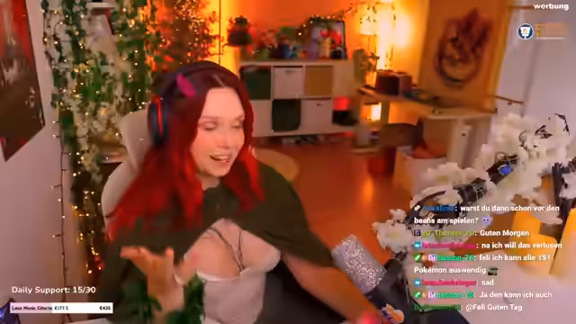 01:54:44Der Streamer unterbricht die Gespräche kurz, um ihrer Katze Chonk Mittagessen zu geben. Anschließend wechselt sie ein Korsettoberteil und berichtet von ihrem Trick mit Fashion Tape, um sicherzustellen, dass das Oberteil an Ort und Stelle bleibt. Dieses Detail führt sie auf ihre Bequemlichkeit und ihre Angst, das Oberteil bei falschen Bewegungen zu verlieren. Dies zeigt einen Einblick in ihre persönliche Pflege und das alltägliche Management ihres Cosplay-Outfits.