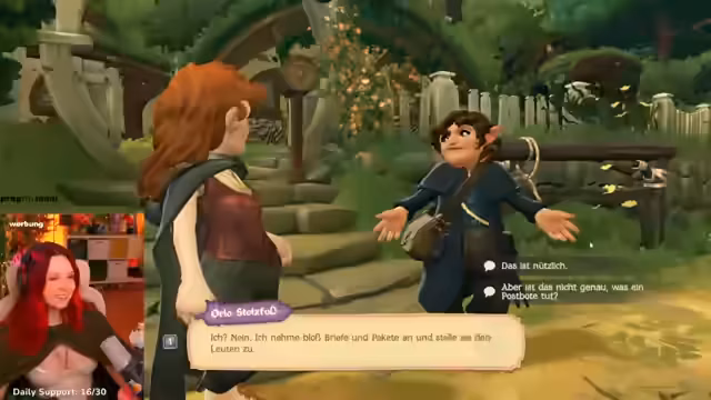 02:57:54Die Suche nach dem Buch der Regeln führt zu verschiedenen Dorfbewohnern. Der alte Eichler gibt eine Angelrute als Hilfsmittel, um Fische zu fangen. Delfinum, eine Garten-Hobbin, gibt eine Gießkanne und Samen und weist den Streamer an, Schmetterlingen zu folgen, um Pilze und Kräuter zu finden. Felber, ein weiterer Dorfbewohner, hat das Buch als Winkel benutzt. Die Interaktionen zeigen, wie man durch die Erfüllung kleiner Aufgaben und das Kennenlernen der Dorfbewohner in die Welt des Spiels eintaucht.