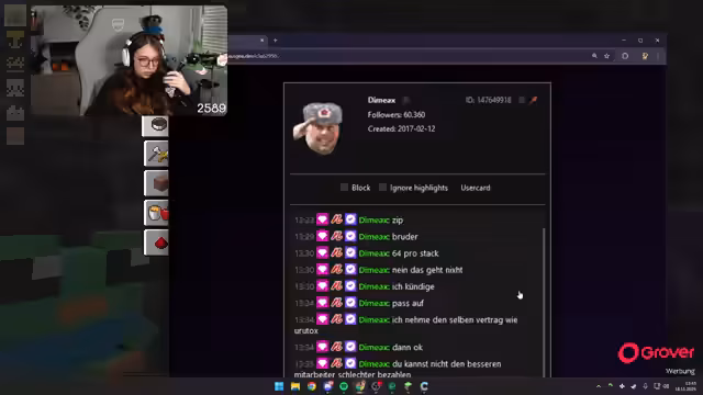 08:39:48Es wird über Noreaxs verzweifelte Suche nach Diamanten gesprochen und der hohe Preis, den der Hauptspieler für seine Diamanten verlangt (ein Stack Diablöcke für 50 Euro). Es wird erwähnt, dass der Hauptspieler Noreax Angst gemacht hat, indem er behauptete, es gäbe eine geheime Server-Vereinigung von 20 Leuten, die sich zusammengetan haben, um ihn zu stürzen. Dies führte dazu, dass Noreax paranoid wurde und bereit war, jeden Preis zu zahlen. Eine Anekdote wird erzählt, wie Dima für 30 Euro pro Stunde Diamanten farmte, aber dann das wollte, was Urotox hatte. Noreax versuchte, Dima in einem Privatcall wieder auf 30 Euro pro Stunde herunterzuhandeln. Es wird festgestellt, dass die angebliche Server-Vereinigung tatsächlich entstanden ist, da viele Leute Fabo Diamanten schenken wollen, um den Marktwert zu steigern. Fabo farmt ebenfalls Diamanten, da er nichts anderes zu tun hat und früh aufstehen musste.