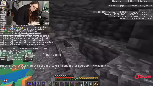 13:53:05Es wird über Gaming-Stühle und deren Auswirkungen auf die Körperhaltung gesprochen, insbesondere über Nackenschmerzen und die Vorteile von ergonomischen Stühlen wie dem Herman Miller. Die Herausforderung, eine aufrechte Sitzposition beizubehalten, während man lange spielt, wird thematisiert. Es wird auch über die Suche nach einem „Stormcutter“ und die Herstellung von Soulfackeln aus Holzkohle diskutiert, da unendlich viel Lava und Holz zur Verfügung stehen. Die Verfügbarkeit von Pale Oak Setzlingen wird geprüft, um weitere Bäume zu pflanzen. Die allgemeine Produktivität des Tages wird hervorgehoben, da an verschiedenen Basen, darunter Revis, Kevins und der eigenen, gearbeitet wurde.