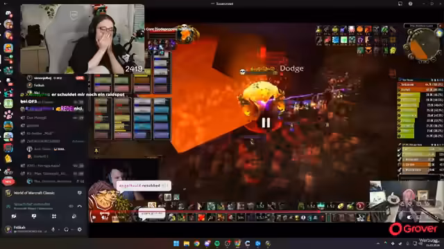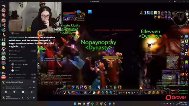 11:39:34Feli lehnt kurz vor dem Raid jegliches Risiko ab. Sie lehnt einen Fullrun in Stratholme ab, da das Risiko zu hoch ist, vor dem wichtigen Raidevent zu sterben. Sie betont, dass die Items, die sie farmt, wichtiger sind, als eine kleine Verbesserung ihrer Ausrüstung. Es wird deutlich, wie sehr sie in das Projekt involviert ist und wie wichtig der Erfolg am nächsten Tag für sie ist.