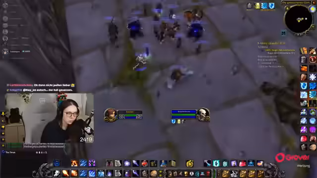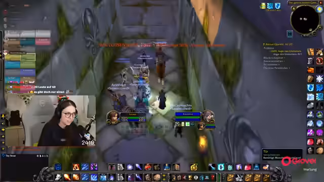 08:05:36Es wird die Koordination des Questeinstiegs in die Instanz besprochen. Der Streamer gibt klare Anweisungen für den Weg: nach dem Einstieg links halten, die kleine Rampe hoch, durch die erste Tür. Er warnt vor einem Patrol, der stölen könnte, und plant, diesen mitzunehmen. Es wird kurz gewartet, bis sich die Gegner resettet haben, bevor die Gruppe gemeinsam die Instanz betritt, um einen geordneten Start zu gewährleisten.