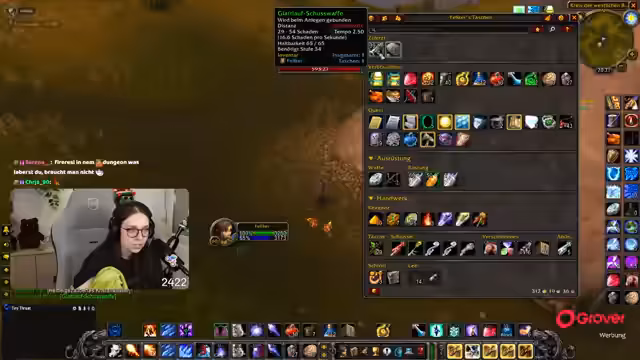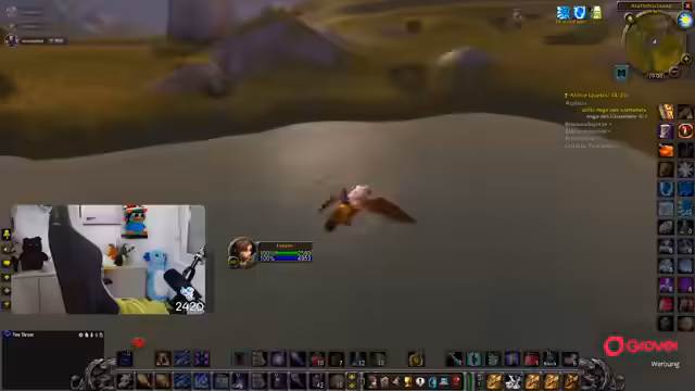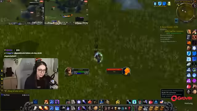 09:44:37Der Streamer zeigt große Frustration über einen Hunter, der ihm Mobs klaut und die Farm-Erfahrung massiv beeinträchtigt. Er versucht, den Spieler 'Knallbumm' dazu zu bewegen, einen anderen Layer zu wechseln, was aber erfolg bleibt. Der Chat schlägt vor, den Spieler auf Reddit zu melden, da es sich vermutlich um einen Bot handelt. Gleichzeitig ist der Streamer mit der Farm-Situation unzufrieden, da sein Inventar mit Elementarfeuern voll ist und er weiter farmt.
