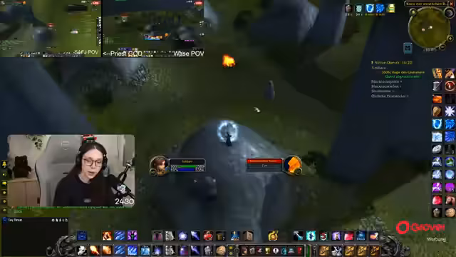 06:21:59Während des Wartens kommt es zu einem spontanen Duell auf Leben und Tod zwischen der Sprecherin und Niki in Feralas. Das Duell dient der Übung und des Spaßes. Es werden Spielmechaniken wie Immunität in Bärenform und die Notwendigkeit, die Gestalt zu wechseln, um Crowd Control zu entfernen, getestet. Das Duell endet dramatisch, als Niki den Sprecherin auf unter 1% Lebenspunkte reduziert. Der Vorgang wird als 'gruselig' und 'crazy' beschrieben und dient als Ablenkung vom stressigen Raid-Vorbereitungsstress.