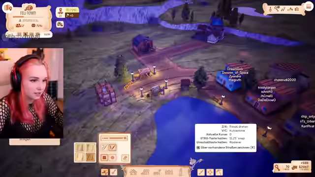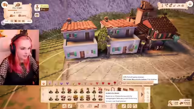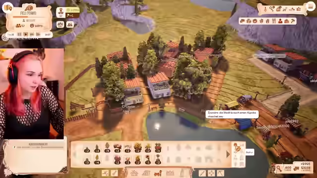 03:04:22Die Twitch-Integration wird aktiviert, wodurch Zuschauern, die im Kanal chatten, automatisch Bewohner der Stadt zugewiesen werden. Deren Namen werden dann in der Stadt angezeigt. Es wird mit dem Bauen der Stadt begonnen, wobei zunächst Wohnhäuser platziert und mit Straßen verbunden werden. Die Farbe der Häuser wird zufällig ausgewählt, und es wird versucht, eine ansprechende Umgebung mit kleinen Teichen und Wegen zu gestalten. Die ersten Familien ziehen ein und bekommen Namen im Spiel zugewiesen. Es wird überlegt, wie man die Zufriedenheit der Einwohner steigern kann, indem man beispielsweise einen Marktplatz mit verschiedenen Ständen wie Geflügel und Käse errichtet. Die Ausrichtung der Gebäude wird angepasst, und es wird nach Möglichkeiten gesucht, die Draufsicht zu verändern. Arbeiter werden für die Marktstände eingestellt, und es wird eine Lagerhalle gebaut, um die Versorgung der Stände sicherzustellen. Dekorationen wie Holzbänke und Laternen werden platziert, um die Stadt gemütlicher zu gestalten. Es wird festgestellt, dass der Weg nicht genormt ist und Bäume werden platziert, um die Sicht auf den See nicht zu versperren.