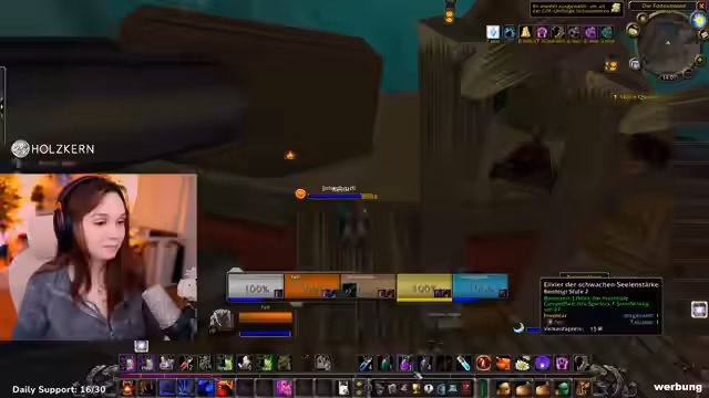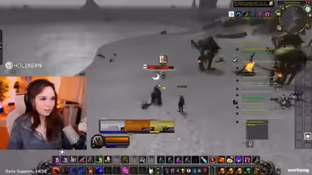 02:15:11Der Stream konzentriert sich auf das Erledigen von Quests in World of Warcraft, speziell als Hexenmeister. Es wird die Frage nach Buffs durch den Succubus Dina diskutiert, welche Fertigkeiten wie Unendlicher Atem und der Unterwasseratemtrank verfügbar sind, und es werden Mobs wie ein Succubus und ein roter Kristall bekämpft. Dabei wird über die Spielstrategie gesprochen, wie man mit Kreaturen umgeht und welche Fertigkeiten sich im Kampf bewährt haben.