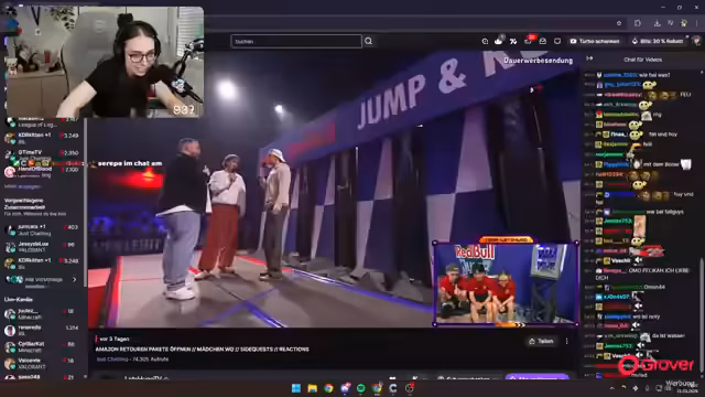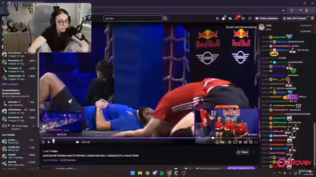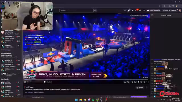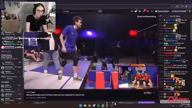 00:34:00Der Streamer detailliert den Parcours des Red Bull Jump & Run Events. Er beschreibt die einzelnen Hindernisse wie Stepper, Holzstäbe, ein Loch und das Trampolin. Besonders erwähnt er die mentale und körperliche Anstrengung des Events. Er gibt an, sich Sorgen gemacht zu haben, seinem Team durch eine schlechte Leistung zu schaden, besonders da er im Fang-Game nicht mitmachte, um das Team nicht zu belasten. Trotz des Sieges fühlt er sich persönlich nur zu 50 % zufrieden, da er keine herausragende Leistung erbracht und das Hauptproblem die schwer zu öffnenden Türen waren.
