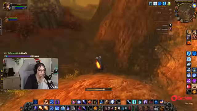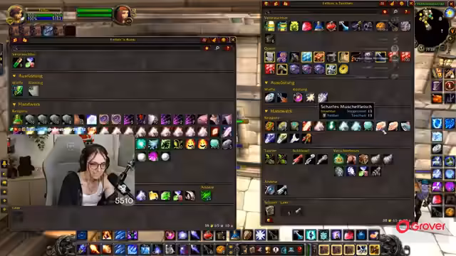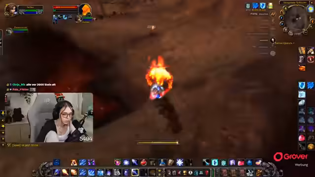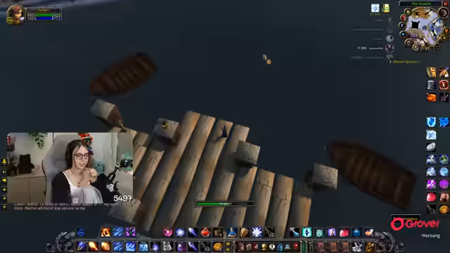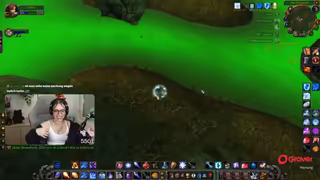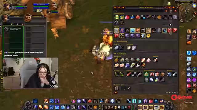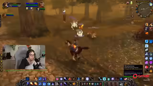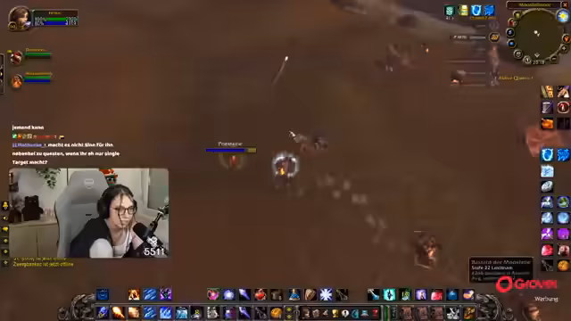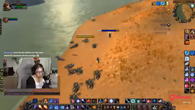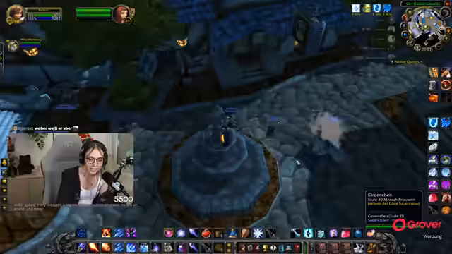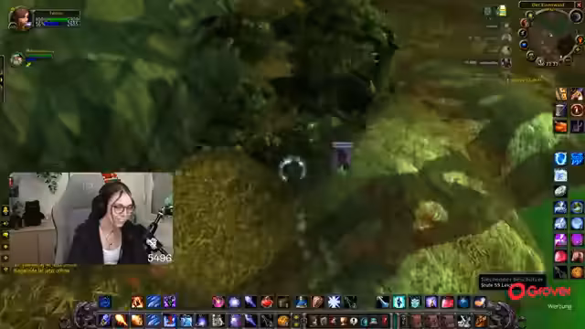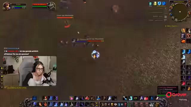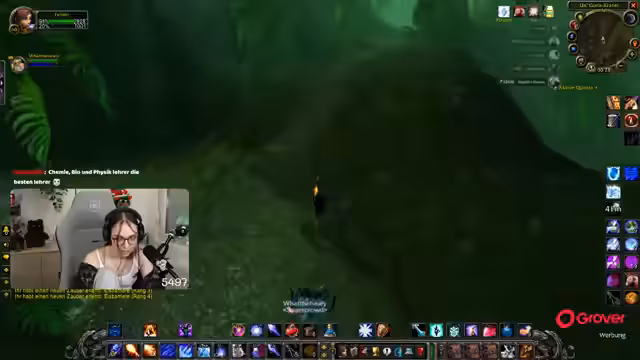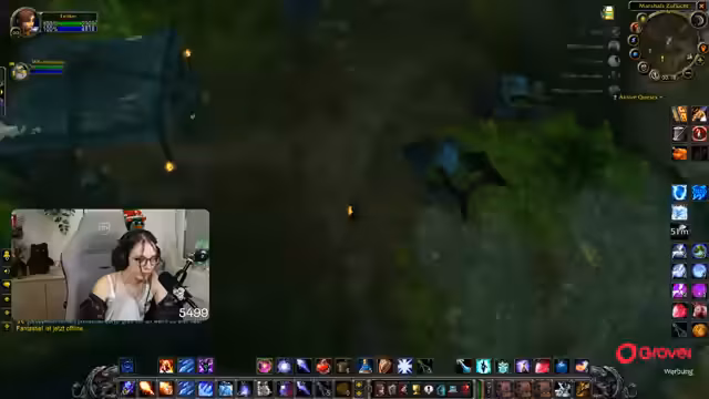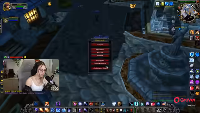 08:30:06Nach der Pause kehrt der Streamer zum Gameplay zurück und befindet sich weiterhin im Teufelswald, um Essenzen zu farmen. Es tauchen technische Probleme auf, da er den Sound von Zeus nicht hört und dies auf eine hohe Verzögerung im Discord-Chat zurückführt. Um die Performance zu verbessern, stellt er die Grafikeinstellungen von World of Warcraft herab. Die Gruppe sucht nach neuen Farm-Möglichkeiten, und der Streamer ärgert sich über die geringe Drop-Chance der Essenz, die angeblich nur bei 4% liegt.