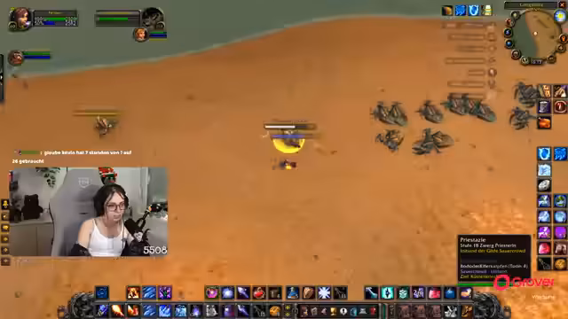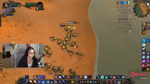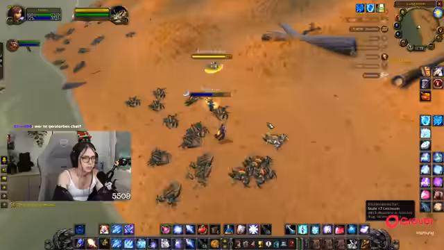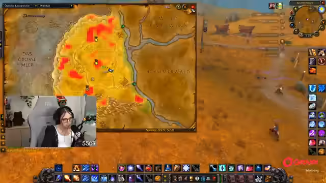 15:06:56Das Stream-Team bezieht sich auf die Mobs in Silithus und stellt dabei fest, dass es sehr viele sind. Nach einem ersten erfolgreichen Pull wird ein zweiter, riskanterer Versuch mit einem Wurm unternommen. Die Gruppe nutzt Mounts und eine Heatmap, um die Camps effizienter abzuarbeiten und Mobs wie Staubstürmer und Steinatzen zu farmen.