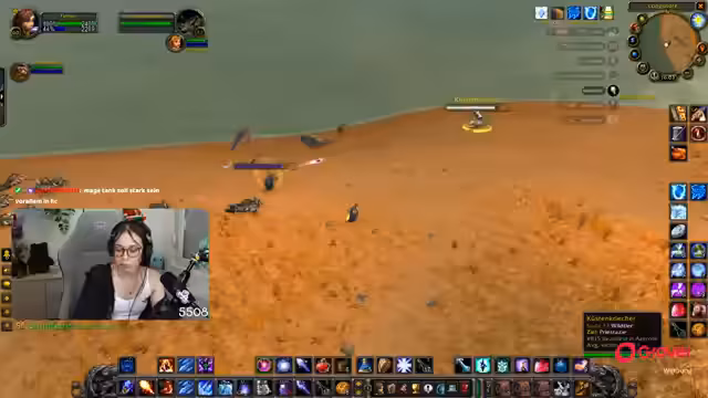 14:55:46Nachdem die persönliche Runde beendet ist, geht es zurück ins Gameplay. Der Streamer und ein Begleiter namens Simon begeben sich in die Tanaris-Wüste, um dort Quests zu erledigen. Der Fokus liegt darauf, Elite-Mobs zu vermeiden und strategisch vorzugehen. Gleichzeitig nutzen die Gelegenheit, um über reale Events wie die Stream Awards zu sprechen und stellen fest, dass sie sich persönlich gesehen haben, was die Online-Community mit der realen Welt verbindet.
