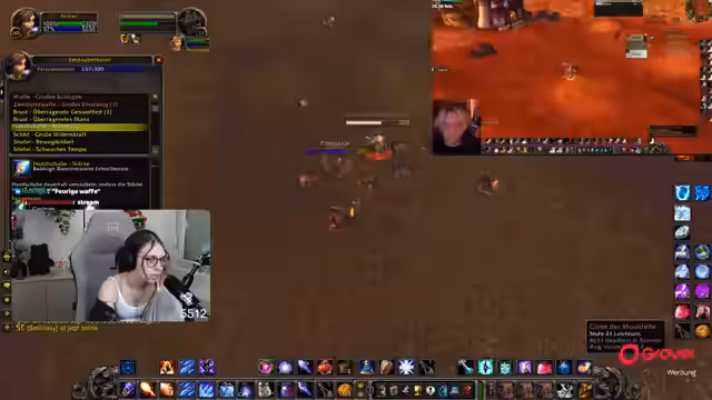 05:43:30Der Streamer ist sich seiner Limits in der Gruppe bewusst und plant einen 'BRD-Run' (Blackrock Depths) für später. Er bittet um Nachfrage bei den potenziellen Teilnehmern. In der Zwischenzeit wird weiter in Teufelswald gelevelt, wobei Mobs aufgrund des hohen Levelunterschieds leicht zu besiegen sind. Man stellt Platzprobleme und Item-Loot in Frage.
