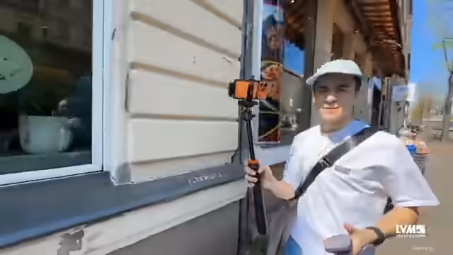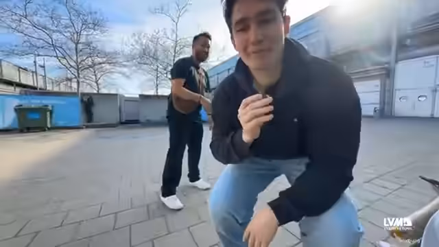 01:02:53Die Gruppe erreicht ihr Ziel, nachdem sie unterschiedliche Anlaufstellen für Crepes überprüft hat. Zuerst suchen sie vergeblich nach einem Crepe-Laden, obwohl dieser auf Google Maps vermerkt war. Stattdessen stoßen sie auf ein Möbelhaus mit einem ungewöhnlichen fliegenden Gabelstapler, der für Aufregung sorgt. Der Streamer dokumentiert diesen kuriosen Fund begeistert und zeigt sich beeindruckt von der unkonventionellen Gestaltung.