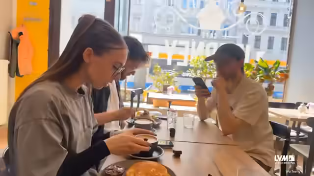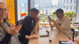 02:03:40Die Gruppe trifft im Restaurant ein und sucht nach einem passenden Tisch. Der Streamer interagiert mit dem Chat über die technische Ausstattung und stellt sicher, dass alle Mikrofone funktionieren. Nach einigem Hin und Her werden die Tische zusammengestellt und alle nehmen in der Mitte Platz. Die Gruppe muss sich während des Essens benehmen, was als Herausforderung beschrieben wird.