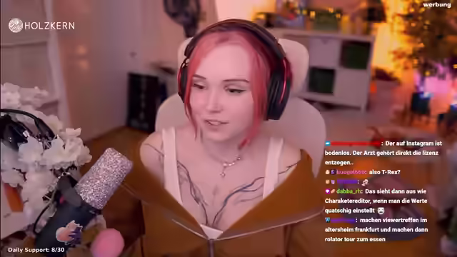 01:17:24Ich kündige an, dass ich mich gleich mit Dilli treffen werde, um Medieval Dynasty zu spielen und unsere Stadt weiter aufzubauen. Dabei bedauere ich, vergessen zu haben, dass wir uns mittelalterliche Outfits anziehen wollten, und entschuldige mich bei Dilli dafür. Ich erwähne kurz, dass ich vor dem Gaming noch einen kleinen Sellout für Holzkern machen werde, da ich Holzkern-Partner bin. Ich präsentiere Holzkern Schmuck, wie Ringe und Armbänder, und betone die hohe Qualität und Einzigartigkeit der Naturmaterialien. Ich erwähne, dass Holzkern auch Herrenschmuck und Uhren anbietet und dass es einen Rabattcode (Feli Kern) für 15% Rabatt gibt. Ich bedanke mich bei Holzkern für das Sponsoring des Streams und hebe den tollen Support hervor. Ich gehe kurz hoch, um nach einem mittelalterlichen Outfit zu suchen, kehre aber ohne Erfolg zurück, da die Sachen noch ungewaschen sind.
