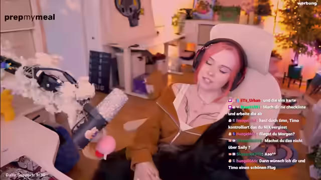 01:28:43Ich äußere mich zu meinem All-Time-Favorite-Cosplay, dem Midna-Cosplay. Es wird über Homeoffice gesprochen und die Möglichkeit, nebenbei den Stream zu schauen. Ich erkläre, dass wir gleich Medieval Dynasty spielen werden, ein Spiel, in dem man eine Siedlung aufbaut und für Nachkommen sorgt. Ich schildere meine Gedanken zum Auswandern aus Deutschland, werde aber von meinem Partner Timo davon abgehalten. Ich unterhalte mich mit dem Chat über potenzielle Auswanderungsziele und meine Vorliebe für warme, südliche Orte. Dilli trifft ein und ich beichte, das Mittelalter-Kostüm vergessen zu haben. Dilli nimmt es gelassen auf und erklärt, dass sie auch nicht komplett verkleidet ist. Es wird über die morgige Japanreise gesprochen und wie ich das Internet dort nutzen werde, dank einer SIM-Karte von Melon Soda. Ich bitte Dilli, mir ihr VOD zu geben und wir versuchen, Stream Together einzurichten, um die Cam zu testen.