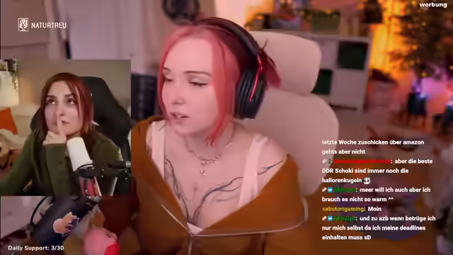 02:58:08Es wird Medieval Dynasty gespielt und experimentiert mit der Einbindung von Dillys Cam in den Stream. Es wird diskutiert, wo Dillys Cam am besten platziert werden soll, um die Übersichtlichkeit für die Zuschauer zu gewährleisten. Verschiedene Optionen werden ausprobiert, einschließlich der Platzierung unterhalb der eigenen Cam. Der Chat wird nach seiner Meinung zur Platzierung gefragt. Es wird festgestellt, dass Dilly im Spiel fast gestorben wäre und die Zuschauer dies im Chat kommentieren. Es wird überlegt, ob die Einblendung auf mobilen Geräten gut sichtbar ist und Alternativen wie das Öffnen beider Streams vorgeschlagen. Anpassungen an der Größe und Positionierung von Dillys Cam werden vorgenommen, um sie optimal in den Stream zu integrieren. Es wird kurz auf eine laufende Umfrage eingegangen und die Notwendigkeit, sich um die virtuelle Ehefrau im Spiel zu kümmern. Es wird humorvoll kommentiert, dass die Interaktion mit der Ehefrau im Spiel schnell zur Schwangerschaft führt, ähnlich wie bei 'Bienchen und Blümchen'. Es wird über die Möglichkeit gesprochen, schlafen zu gehen und die Schlafgewohnheiten im Spiel thematisiert. Der Chat amüsiert sich über die dargestellten Spielmechaniken und vergleicht sie mit 'Die Sims'.