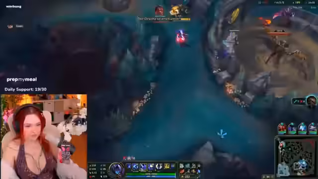 03:06:02Das Gameplay beginnt mit der Diskussion über die Lox-Queue, die laut feli freigegeben wurde. Es folgt ein dynamischer Spielverlauf mit taktischen Besprechungen, wie der Verteilung von Rollen mit Chance auf Ubu und feli auf Aare. Feli zeigt sich erfreut über seinen hohen Schaden auf den Gegner, insbesondere auf Mundo, und plant seinen Ultimate-Einsatz strategisch. Das Team arbeitet an der Sicherung von Objectives wie Drake, während Chat-Spiele das Miauen der Katze Trunks bei jedem Tod fordern, was zu humorvollen Interaktionen führt.