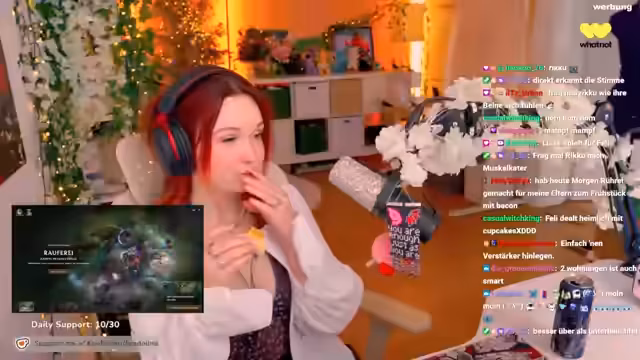 03:11:08Die Beziehung zum Chat ist ein wiederkehrendes Thema. feli fühlt sich vom Chat manchmal unfair behandelt und kritisiert die Kommentare, die häufig negativ konnotiert sind. Gleichzeitig initiiert sie jedoch spielerische Aktionen mit dem Chat, wie die Forderung nach einem tiefen, männlichen Miau für Trunks nach jedem Tod. Diese Aktionen führen zu einer Mischung aus Cringe-Gefühl und spielerischem Wettbewerb zwischen feli und ihrem Teamkollegen Lena.