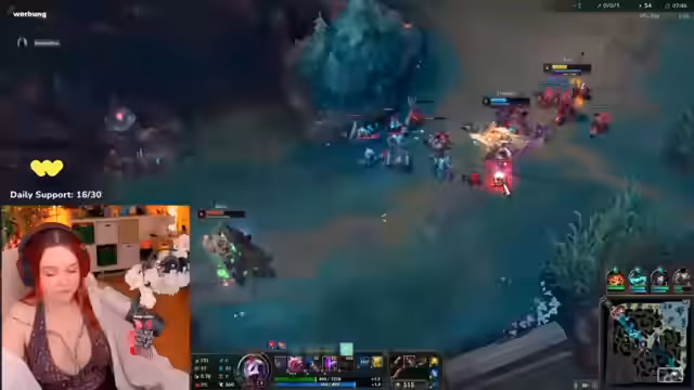 02:14:19Der Streamer analysiert eingehend die taktischen Entscheidungen des Teams und insbesondere die Fähigkeitsabfolge des Champions Pantheon. Er diskutiert eine mögliche Fehlanzeige im Chat und erläutert die Kombination aus Fähigkeiten, um den maximalen Schaden zu erzielen. Das Spielgeschehen selbst wird live kommentiert, mit Fokus auf die Bedrohung durch den gegnerischen Nocturne und die Notwendigkeit, die Drake-Barriere zu sichern, was zu hektischen Manövern und einer unübersichtlichen Lage auf der Map führt.