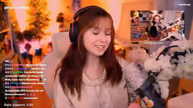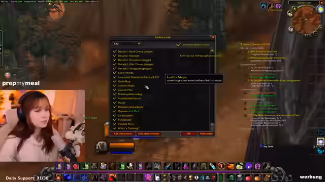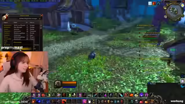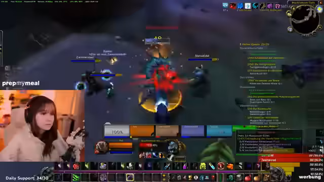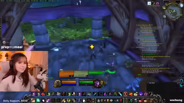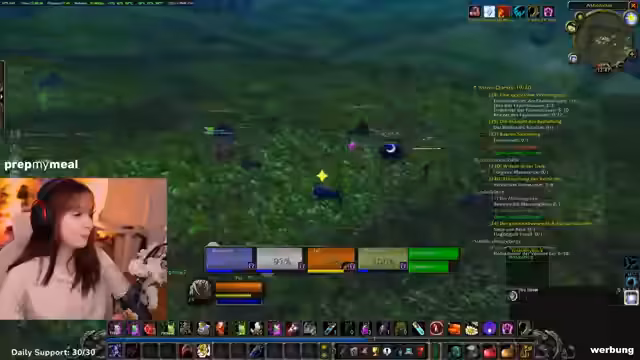 05:12:38Der Streamer bewirbt seinen aktuellen Partner 'PrepMyMeal', einen Essenslieferdienst. Er berichtet, dass er diesen Monat wieder von dem Unternehmen unterstützt wird und seinen Rabattcode anbietet. Er äußert den Wunsch, zukünftig Koch-Streams zu machen, sobald er eine größere Küche hat. Im Anschluss daran plant er, einen Flugpunkt im Gebiet Dämmerwald freizuschalten, nachdem er eine Quest angenommen hat. Er zeigt sich jedoch verunsichert wegen eines hochlevelnden Elite-Mobs in dieser Region.