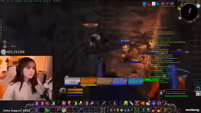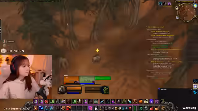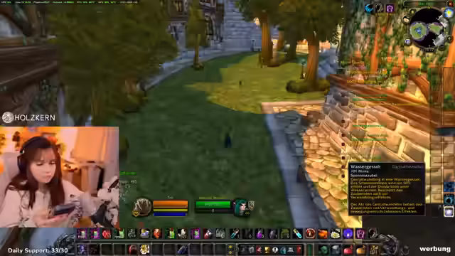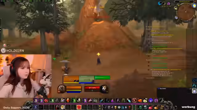 05:49:40Der Streamer erkundet den Düsterwald, konzentriert sich auf das Questen und wechselt dabei seine Gestalten zwischen Katze, Bär und Mensch. Er ist auf der Suche nach Gegnern für Erfahrungspunkte, ist jedoch vorsichtig und prüft jeden einzelnen, um nicht versehentlich Elite-Gegner zu aggroen, die ihn sofort töten könnten. Trotzdem gerät er in eine Situation, in der er denkt, einen Elite-Mob zu bekämpfen, der sich jedoch als harmlos herausstellt. Die Spielfigur ist kurz vorm Level-Up, was für den Streamer ein weiterer Meilenstein auf seinem Level-Weg ist.