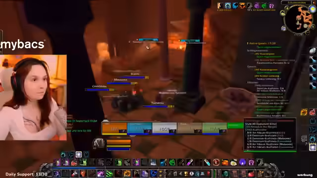 01:44:51Der Streamer erzählt eine Anekdote aus einem WoW-Loot-Quest. Nachdem die Gruppe lange erfolglos nach einem Gegenstand gesucht hat, spottete der Streamer über Nemo, der sich geweigert hatte, den Ausruf 'Uwu' zu sagen. Unmittelbar danach droppte der Gegenstand. Dies führte zum Glauben, dass Nemo einen magischen 'Uwu-Gott' beschwören könne, der dem Loot-Glück verleiht. Der Streamer rät dem Chat, bei Loot-Quests Nemo immer dazu zu bringen, 'Uwu' zu sagen, um garantiert Erfolg zu haben. Danach startet man schließlich in den Verlies-Dungeon.