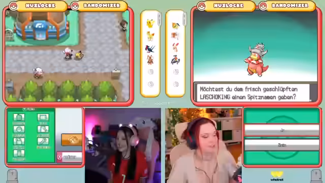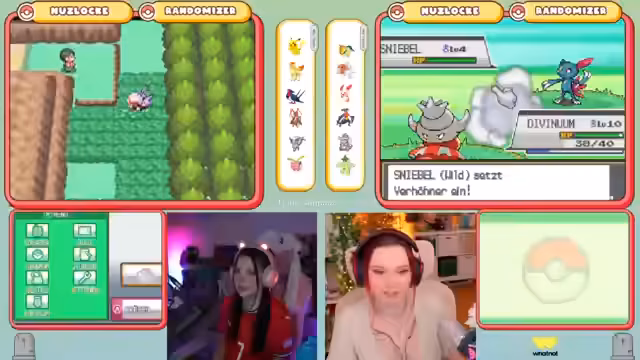 05:24:48Der Stream beginnt mit intensiven Pokémon-Kämpfen im Rahmen einer Nuzlocke-Challenge. Die Streamerin fängt verschiedene Pokémon, darunter einen Netzball-Träger, und diskutiert Strategien mit ihrem Mitspieler Nico. Es geht um das Fangen eines Grass-Pokémon, das anschläft, und die Entscheidung, welche Pokémon im Team behalten werden. Das Team wird umorganisiert, indem Ponita und Golking ersetzt werden, um eine ausgewogene Typenabdeckung zu erreichen und für die nächste Arena vorzubereiten.