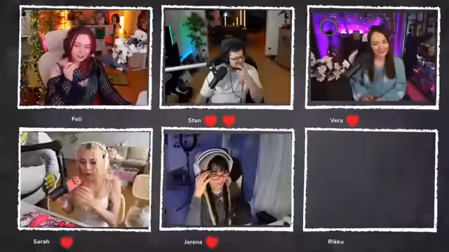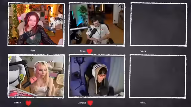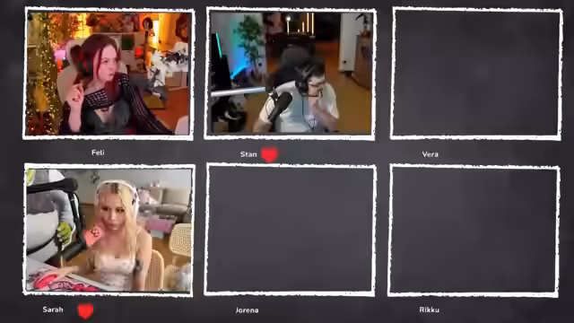 03:27:25Es kommt zu technischen Schwierigkeiten beim Zusammenfügen der Teilnehmerkameras. Vera und Riku scheinen Probleme mit der Verknüpfung zu haben, was dazu führt, dass ihre Bilder nicht sofort erscheinen. Der Streamer kommuniziert intensiv mit den Teilnehmern, um die Probleme zu beheben und alle Bilder im Overlay zu integrieren.