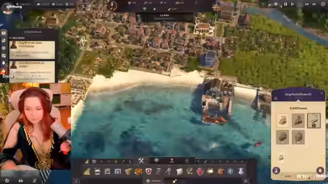 05:34:02Nach intensivem Ausbau der Baumwoll- und Alpakaproduktion ist die Kette für die Herstellung von Melonen schließlich fertiggestellt. Dies ist ein entscheidender Meilenstein, da Melonen für den Bau von Fregatten benötigt werden. Während die Produktionsketten reibungslos laufen und die Stadt eine positive Bilanz aufweist, wird ein Kriegszustand ausgerufen, der jedoch keinen Einfluss auf die aktuellen Pläne hat. Der Fokus liegt nun auf dem Bau der ersten Fregatten.