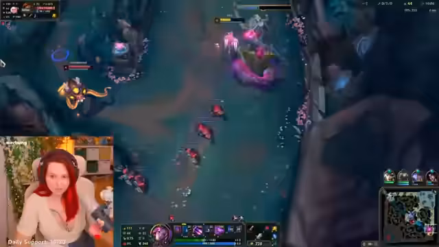 02:57:57Der Streamer wechselt nun zur Spielanwendung von League of Legends und startet ein Ranked-Spiel. Zuerst treten technische Herausforderungen auf, bei denen das Spielgeräusch im Stream nicht zu hören ist, was die Streamerin frustriert. Auch während des Spiels haben sie und ihr Team, das den neuen Champion Jhin spielt, Schwierigkeiten gegen eine gegnerische Katarina und einen Vel'Koz. Das Spielverlauf ist prekär, da die Gegner sie stark unter Druck setzen, was zu einem eher unglücklichen Ende führt.