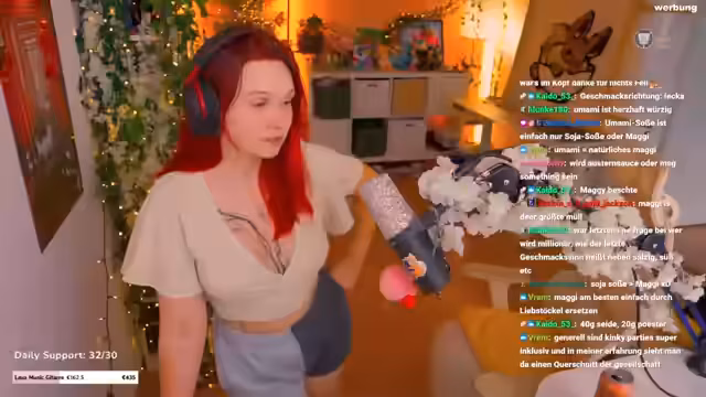 02:21:41Zu Beginn des Streamabschnitts äußert die Streamerin Bedenken bezüglich des Alterns und präventiver Maßnahmen wie Anti-Aging. Sie äußert den Wunsch, niemals als Oma bezeichnet zu werden, da sie keine Kinder plant. Als Zuschauerin Lucy auftauchend, wird das Gespräch auf deren berufliche Laufbahn gelenkt. Lucy erläutert, wie sie von einem Minijob in der Kosmetikbranche überzeugt wurde und daraufhin ihren Job gekündigt hat, um ihren eigenen Kosmetikladen zu eröffnen, was sie als erfüllend empfindet.