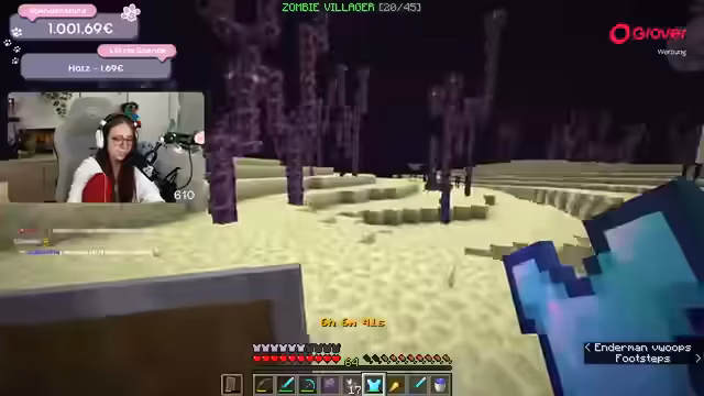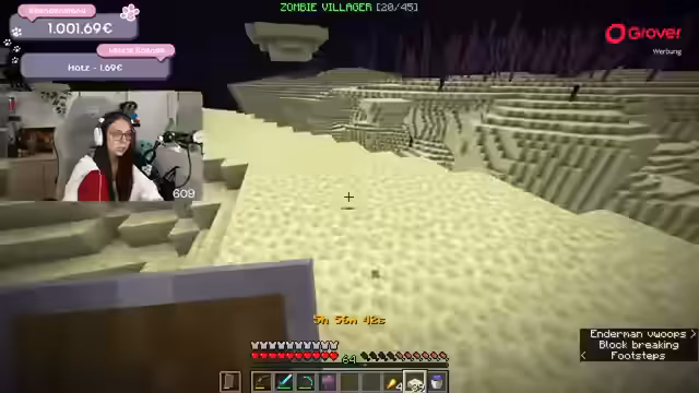 01:48:00Die Suche nach den nächsten benötigten Mobs, wie einem Donkey oder einem Drowned, wird fortgesetzt. Dabei kommt es zu zeitlichen Verzögerungen und technischen Problemen, wie etwa einem Disconnect. Die Streamer organisieren sich neu, treffen sich in einem Dorf und rüsten sich mit neuer Ausrüstung aus. Eine Spende von 25 Euro führt zur Aktivierung eines neuen Mobs und beflügelt die Runde.