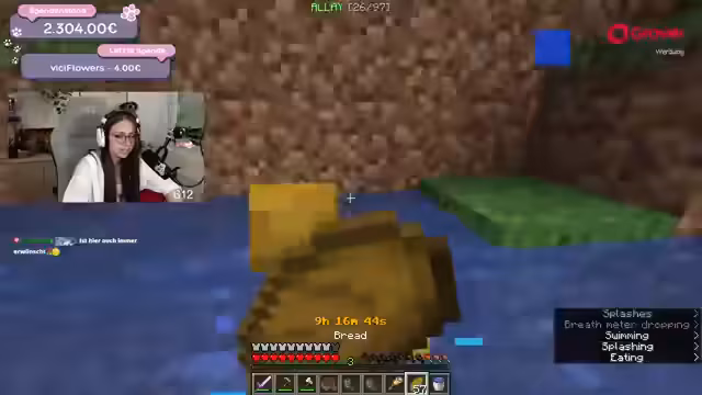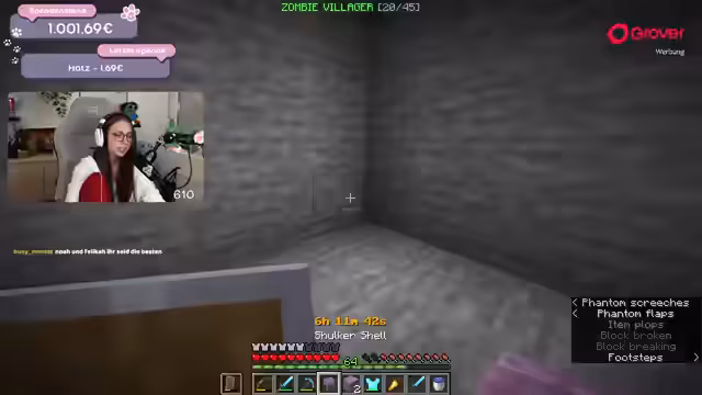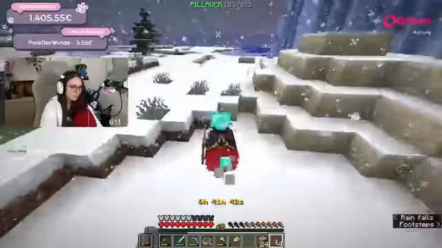 06:52:35Der Streamer kämpft mit mehreren technischen und gameplaybedingten Problemen. Er verliert seine komplette Ausrüstung, einschließlich Elytra, nach einem Todesfall im Spiel und muss alles neu zusammensuchen. Um dies zu beschleunigen, plant er, nachts gezielt Creeper zur Farmung von Schwarzpulver zu jagen. Zudem muss er sich den Vorwurf anhören, einen Account-Bot zu nutzen, da ein Nachrichten-Empfangsproblem den Chat irritiert.