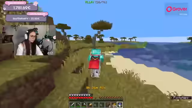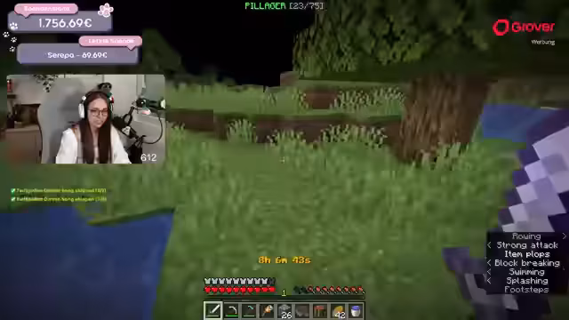 07:44:35Nach dem verheerenden Verlust der gesamten Ausrüstung beginnt eine Phase des Wiederaufbaus. Der Streamer erkundet systematisch die Welt in westlicher Richtung, um den Ort seines Todes zu finden und seine Habseligkeiten wiederzuerlangen. Parallel dazu wird der Dank an die Spender weiterhin großartig in den Chat gesprochen, und es werden neue Spenden wie 100 Euro von Krauti bekannt gegeben, die für positive Stimmung sorgen.