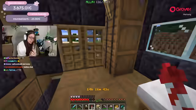 14:17:19Nach über 13 Stunden Streamzeit diskutiert der Streamer die lange Dauer des Charity-Streams, bei dem bereits 3675 Euro für Notpfote gesammelt wurden. Er deutet an, den Stream aussetzen zu müssen, um Privatsphäre zu haben und Zeit mit Freunden zu verbringen. Obwohl die Minecraft-Challenge noch nicht abgeschlossen ist, zeigt er Erschöpfung und Unsicherheit, ob er sie zu Ende bringen wird, und überlegt, den Stream am nächsten Tag fortzusetzen.