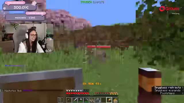 08:58:59Die Ziel der Challenge wird erklärt: für 25 Euro Spenden muss ein weiterer Mob durch das Fernglas gefunden werden. Der aktuelle Stand von 26 von 75 zu findenden Mobs wird bekannt gegeben. Die Fortschritte und die Liste der bereits gefundenen Mobs sind für die Zuschauer sichtbar.