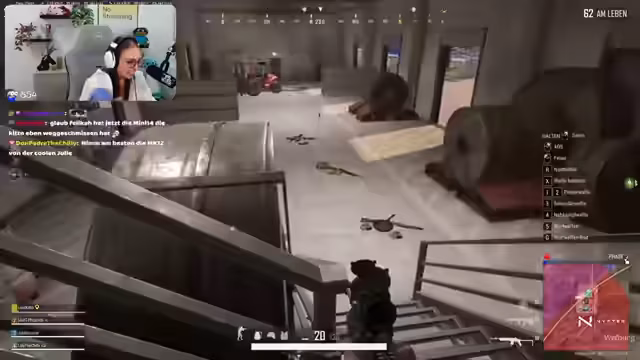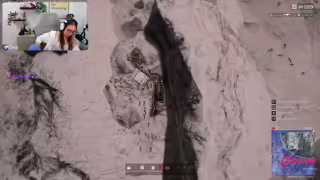 03:29:21Das Finale beginnt, und der Streamer spielt in einem Team. Es wird schnell klar, dass seine PUBG-Künste nach langer Zeit des Nichtspielens eingerostet sind. Er hat Probleme mit der Waffensteuerung, dem Zielen und der Orientierung in der Spielwelt. Zwar gelingen ihm in den ersten Runden einige Kill durch reines Glück, aber das Spiel generell wirkt unkoordiniert und chaotisch. Das Team diskutiert kurz eine Taktik, bei der sie ihre Bienenskin-Identität zunächst verbergen, um nicht als leichte Beute erkannt zu werden, doch im Fokus steht der Spaßfaktor und nicht der Sieg.