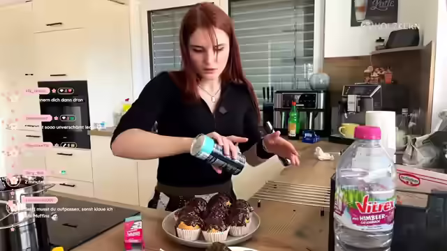 05:33:43Es wird ein entspanntes Coworking für den nächsten Tag angekündigt, wobei der Stream voraussichtlich nicht sehr lange dauern wird. Die Streamerin plant, sich am Abend zu dehnen, um ihren Spagat zu verbessern. Sie erwähnt, dass sie seit einer Woche für den Spagat dehnt und dass die Zeit schnell vergeht. Die Streamerin plant, die Streampläne einzuhalten, sofern nichts dazwischenkommt. Sie beginnt, die Muffins mit Schokolade zu verzieren, wobei sie feststellt, dass alles voller Schokolade ist. Sie äußert den Verdacht, dass sie Insekten jagen muss und befürchtet, dass es sich um Wespen handeln könnte. Die Streamerin glaubt, dass sie nach diesen ganzen Süßigkeiten erst einmal eine Pause von Schokolade braucht. Die Schokomuffins müssen kurz kühlen, bevor die Glasur aufgetragen wird. Sie verziert die Muffins mit Glitzer und Spinnennetzen aus Schokolade, ist aber mit dem Ergebnis nicht zufrieden und entscheidet sich für Streusel.