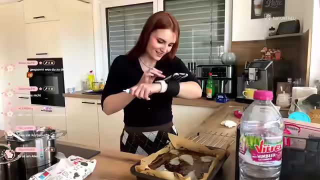 05:21:38Es wird über das Backen von Brownies gesprochen, wobei eine spezielle Zutat erwähnt wird, die erraten werden soll. Die Streamerin spricht über Weihnachten und ihre Vorliebe für Schnee, während sie Chris im Chat begrüßt. Es wird erwähnt, dass weiße Schokolade für Geister auf Muffins benötigt wird und dass Streusel auf die Brownies kommen. Der Fokus liegt auf dem Abkühlen der Schokolade und dem Verzieren der Muffins. Die Community beteiligt sich mit Geschenk-Abos und Herausforderungen, was zu humorvollen Kommentaren führt. Die Streamerin plant, aus der geschmolzenen weißen Schokolade Geister für die Brownies zu formen, wobei alles gut abkühlen muss. Es wird über Urlaubspläne diskutiert, wobei die Eltern der Streamerin Last-Minute-Buchungen bevorzugen. Die Streamerin plant, morgen ein entspanntes Coworking zu veranstalten und sich am Abend zu dehnen, um ihren Spagat zu verbessern. Sie hält an ihren Streamplänen fest und kündigt an, dass sie die weißen Schokoladengeister auf die Brownies machen wird.
