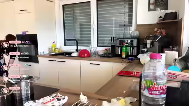 02:32:27Es wird über die Notwendigkeit eines Wasserbads und Probleme mit dem Wasserkocher gesprochen. Eine Schüssel und ein Topf mit heißem Wasser werden benötigt. Ein neuer Wasserkocher wäre gut, da der aktuelle immer wieder ausgeht. Die Garnage, eine Sahne-Creme, meist mit Schoko, wird oft nur als Topping verwendet. Der frisch geputzte Herd ist schon wieder voller Staub. Es wird der Wunsch nach Cupcakes mit Buttercreme geäußert. Der Wasserkocher springt immer wieder zurück. Es wird festgestellt, dass es sich um normalen Staub und nicht um Mehlstaub handelt. Die Küche ist zwar eine Einbauküche gewesen, aber es wurde nicht nach der Herkunft gefragt. Das Holzmuster gefällt nicht so gut, aber die Wände sind okay. Solange kein Viehsaft-Trank daraus gemacht wird, ist alles gut. Der Streamer witzelt darüber, wie es wäre, für einen Tag eine Katze zu sein. Es wird erwähnt, dass eine Katze in einem zu kleinen Karton liegt.