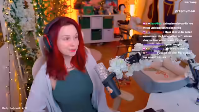 00:09:37Es wird Cosplay im Stream gebastelt, um das Gin-Cosplay, insbesondere die Beinrüstung und einen mechanischen Arm, fertigzustellen. Das Nähen von Overnies steht als Erstes an, in der Hoffnung, dass ein Anti-Rutschband rechtzeitig ankommt, um es anzunähen. Es wird Make-up aufgetragen, wobei die Überlegung im Raum steht, ob es nötig ist, um mehr Zuschauer anzuziehen. Es wird ein neuer, glitzernder Pop-Schutz für das Mikrofon vorgestellt, der den alten, mit Acrylfarbe befleckten ersetzt. Es wird die Teilnahme an der Kaktus-Messe in Leipzig angekündigt, wobei die Hoffnung geäußert wird, dort einige Zuschauer zu treffen und im fertigen Cosplay aufzutreten. Es wird erwähnt, dass die Waffe für das Cosplay in Auftrag gegeben wurde, um sie in 3D zu drucken, und die Maske bald eintreffen sollte. Es wird die Sorge geäußert, dass der Kater Chonk während des Bastelns mit Kleber aufmüpfig wird und möglicherweise ausgesperrt werden muss.