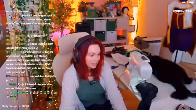 01:32:00Es wird die Notwendigkeit von 30.000 Realverfilmungen von Schneewittchen in Frage gestellt und kritisiert, dass Geschichten umgeschrieben werden, um in eine Doktrin zu passen. Es wird erwähnt, dass sich viele Leute darüber aufgeregt haben, dass Schneewittchen nicht Schneewittchen ist, da die Schauspielerin keine schneeweiße Haut hat. Es wird diskutiert, ob die Hautfarbe ein wesentliches Merkmal von Schneewittchen ist. Die Person erzählt, dass sie sich früher mit Schneewittchen identifiziert hat, weil sie auch blass ist und es ihr durch Schneewittchen vermittelt wurde, dass es okay ist, blass zu sein. Es wird auch die Frisur der Schneewittchen-Darstellerin kritisiert. Es wird das Israel-Palästina-Thema angeschnitten und betont, dass es uncool ist, Völkermord zu unterstützen. Es wird der Plan für den Tag erläutert, Overknees zu machen und das Licht für die Zuschauer heller zu machen. Es wird erwähnt, dass die Grimm-Märchen oft brutal sind. Abschließend wird die Cosplay-Arbeit vorbereitet, indem die Nähmaschine angeschlossen und der Tisch verschoben wird, um eine Craftingfläche zu schaffen.