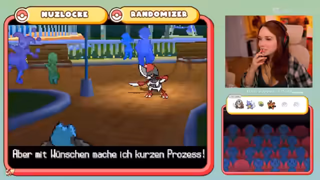04:51:29Die Streamerin kämpft sich durch die Pokémon Arena, die wie ein heruntergekommener Nachtclub aussieht und eine Konzerthalle ist. Sie muss gegen die Bandmitglieder der Arena kämpfen, darunter ein Gegner mit einem Palkia, das sie nur durch geschicktes Einfrieren und Debuffen besiegen kann. Ein weiterer Gegner setzt ein Octillery ein, das überraschenderweise eine Eisattacke beherrscht und Arnie fast besiegt. Nach erfolgreichen Kämpfen und dem Besiegen der Bandmitglieder, die sich als anspruchsvolle Gegner erweisen, bereitet sich die Streamerin auf den Arenaleiterkampf vor. Sie trifft auf Team Plasma, die sie als Pokémon-Diebe bezeichnet, und besiegt deren Evoli, wodurch sie die VM Zerschneider erhält.