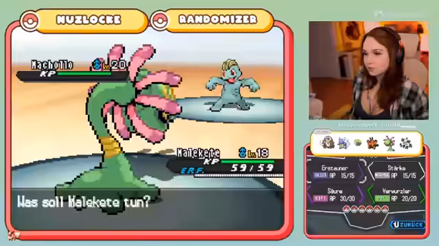 02:29:20Die Streamerin startet eine Nuzlocke-Challenge in Pokémon Schwarz-Weiß 1 mit Randomizer-Einstellungen und zufälligen Entwicklungen. Nachdem sie ein Starter-Pokémon, ein Mammutell namens 'Kel', gefangen und benannt hat, beginnt sie mit dem Fang-Tutorial auf Route 90. Der erste Versuch, ein Pokémon zu fangen, scheitert zunächst, aber das Community-Engagement ist hoch, denn die Community tippt bei jeder Fanganzeige mit.