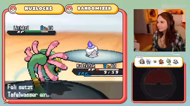 06:23:43In der Kanalisation kommt es zu einem Doppelkampf gegen ein Ponyta und ein Quaxo. Obwohl Ponyta als süß empfunden wird, entscheidet sich die Streamerin für Quaxo, da es sich entwickeln kann und ein Wasser-Pokémon ist. Nach dem Besiegen des Ponytas wird Quaxo gefangen und tritt dem Team bei. Quaxo wird als "Grass 2.0" bezeichnet, da es wie ein weibliches Pokémon aussieht, aber männlich ist. Kurz darauf wird ein weiteres Pokémon, ein Elektro-Typ namens "Erwin", gefangen. Erwin wird ins Team aufgenommen, während Quaxo auf die Bank gesetzt wird, da Timo bereits ein starkes Wasser-Pokémon ist. Das Team besteht nun aus sechs Pokémon, und die Vorbereitungen für den Arenakampf beginnen. Die Streamerin erhält zudem die TM "Stärke" und bringt sie Malekete bei.