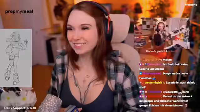 Die Streamerin startet ein Community-Artwork, bei dem Zuschauer gegen eine Spende oder Gifted Subs einen Pokémon-Slot erhalten. Eine Künstlerin zeichnet das Bild live, und Teilnehmer erhalten signierte Kopien. Gleichzeitig kündigt die Streamerin eine schwierige Pokémon-Nuzlocke mit zufälligen Entwicklungen an, für die sie bereits mehrere Spielstände vorbereitet hat, um Rückschlägen entgegenzuwirken.
