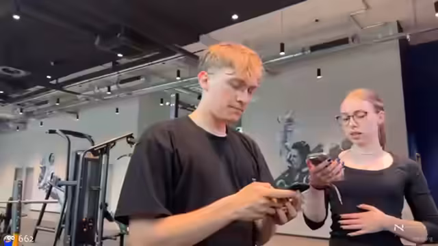 00:25:06Nach einigen technischen Vorbereitungen und Musik-Einstieg beginnen die beiden mit ihrer ersten Trainingseinheit. Eine Liegestütze-Battle dient als Aufwärmen und Duell, wobei Jonsman mit 15 Wiederholungen gewinnt. Im Anschluss daran widmen sie sich der Bankdrück-Übung. Der Streamer muss hierbei lernen, die korrekte Haltung anzunehmen und wird vom Co-Streamer gespottet. Trotz anfänglicher Schwierigkeiten und der ungewohnten Belastung schafft der Streamer mehrere Wiederholungen mit 40 Kilo und trainiert anschließend die Übung korrekt ein.